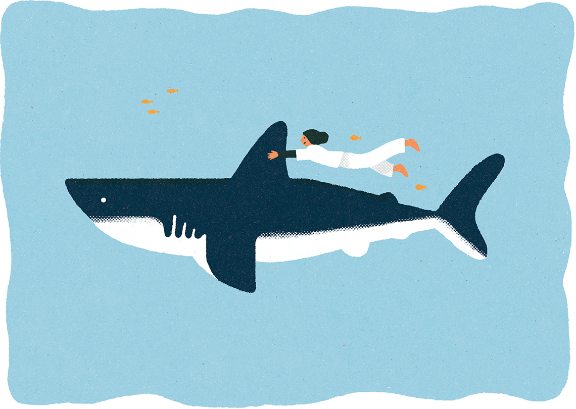 サメです。実はサメって、水槽に入れるとすぐ死んじゃうくらい、繊細でメンタルの弱い生き物。サメ映画も好きで、『ジョーズ』を見るたび、かわいいと思ってしまいます。